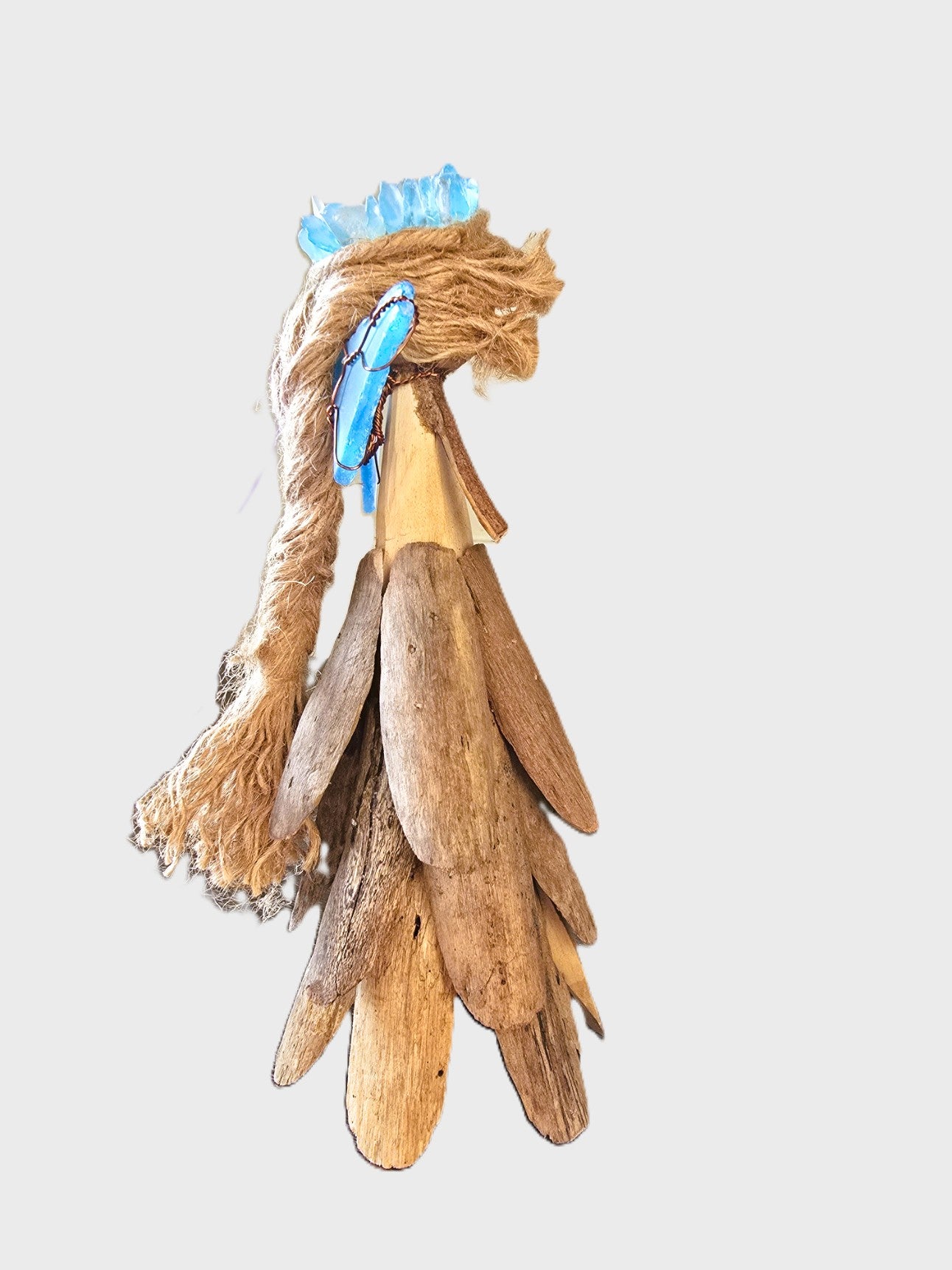 This handmade figurine combines natural driftwood and soothing sea glass, bringing a gentle coastal charm to your space. Perfect for your living room, study, or any corner that needs a calm, unique touch, it creates a serene and inviting atmosphere. Its natural materials and delicate design make it a thoughtful addition to your home decor.