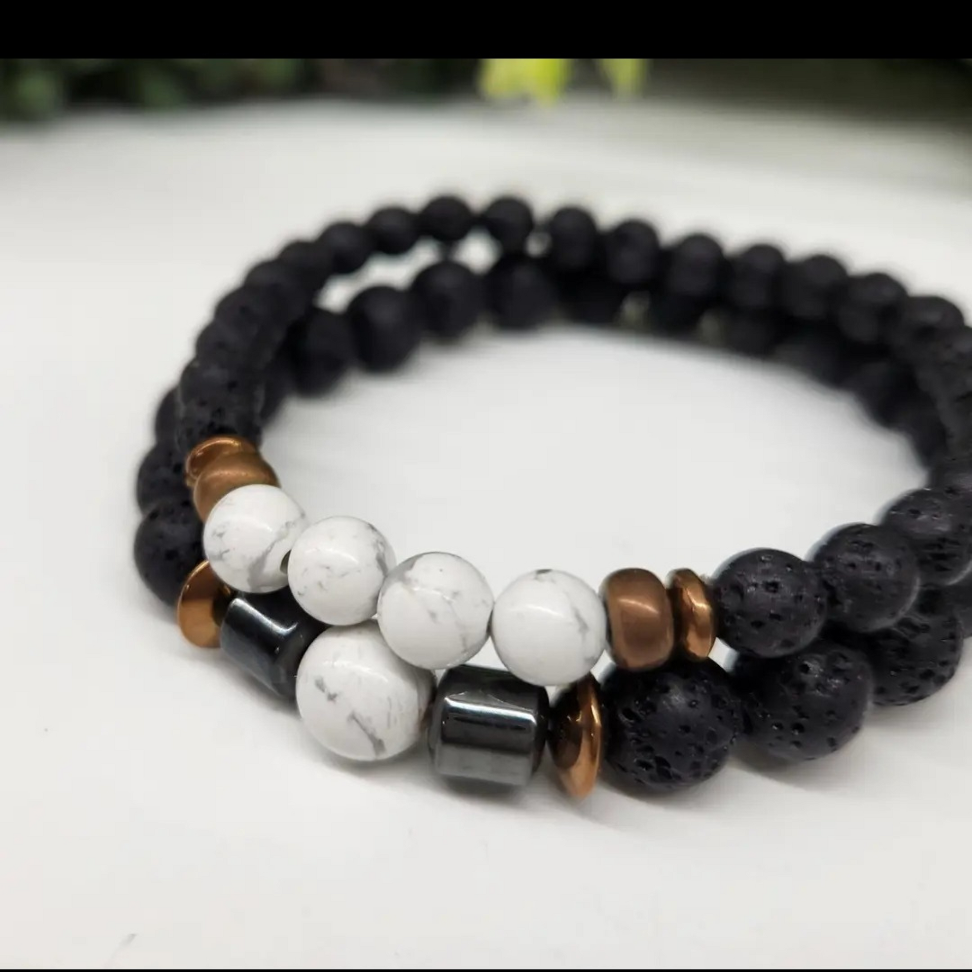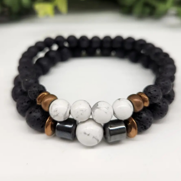 The soothing white howlite is known for its calming properties, while the porous black lava stones can be used as a natural diffuser for your favorite essential oils. Each bracelet is 8 inches in length, designed for comfort and style. Sold as a two-bracelet set for one price, this is the perfect addition to your jewelry collection for both fashion and wellness.